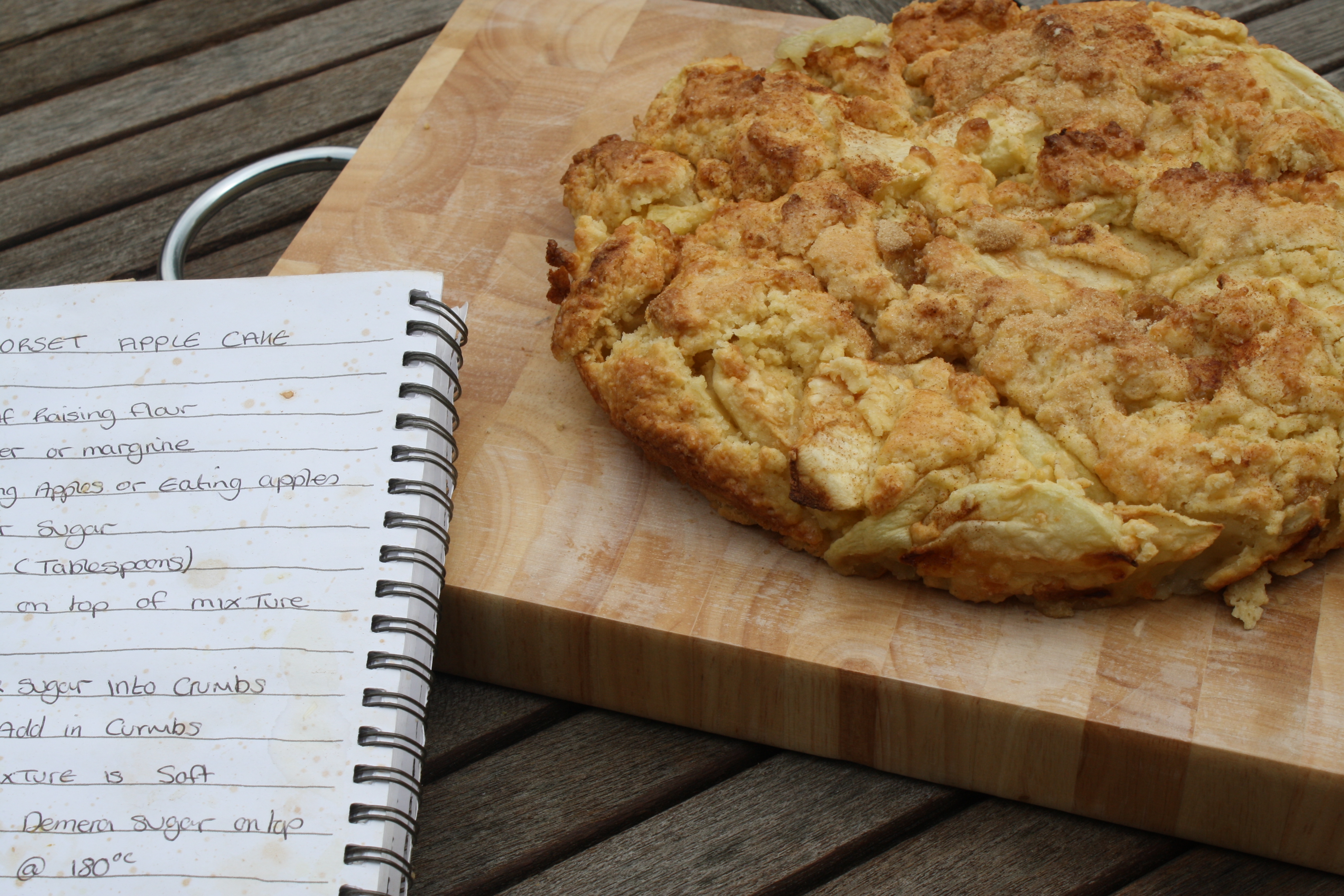 So, to start my Recipes series, I’m going to share my husband’s family’s Dorset Apple Cake. I first saw this recipe when my sister-in-law gave us a handwritten recipe book as our wedding present, and we have used it regularly since then, particularly when we were lucky enough to have an apple tree. We make this cake for ourselves, for guests and sometimes as a gift. I have moved around the UK a lot, but have always felt most at home in the countryside, so using a fruit that has grown in our gardens and orchards for centuries feels special for me and a part of my heritage.
