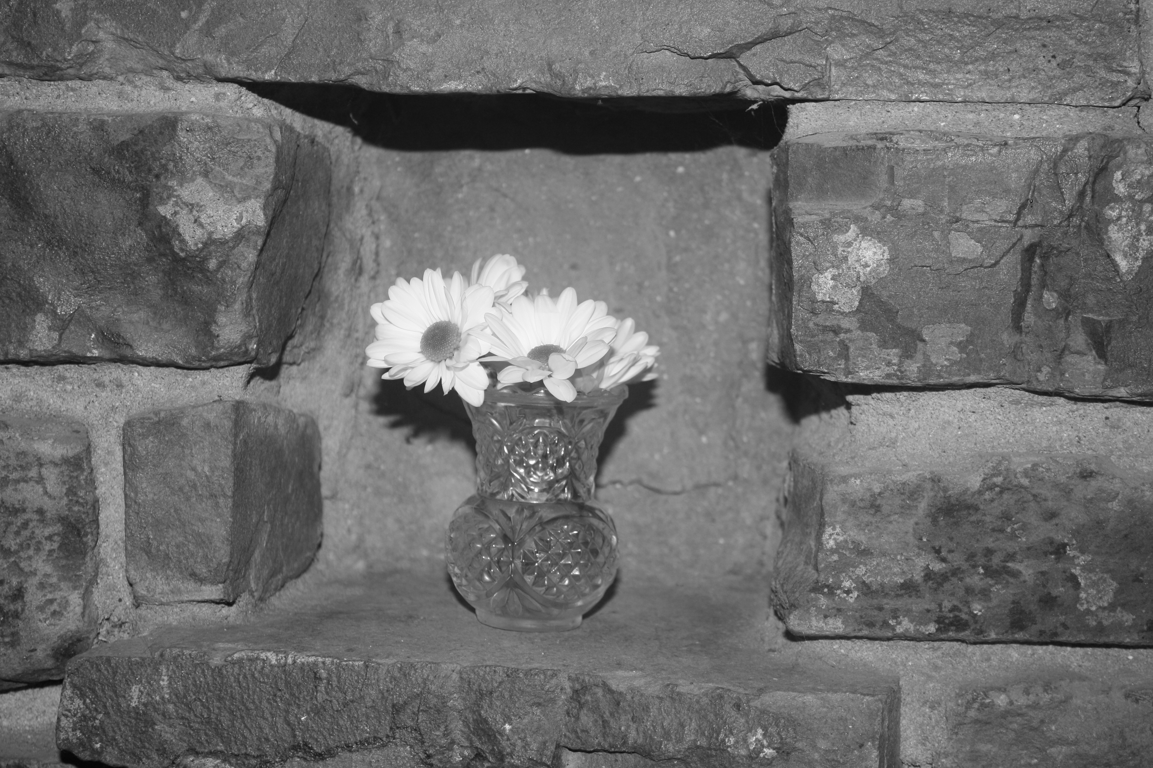 *Flowers in the fireplace.