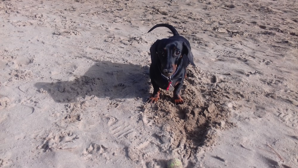 *Playing with the dog.